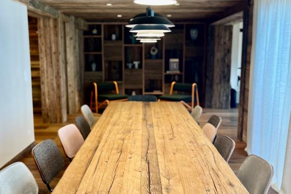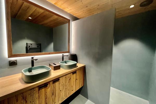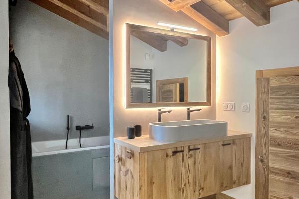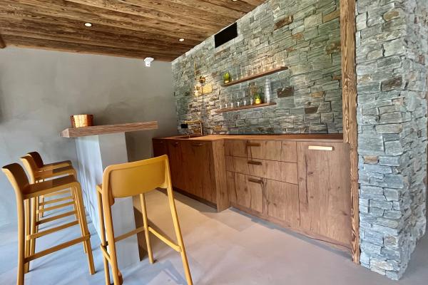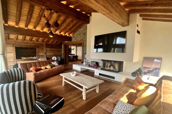 En 2021, le chalet existant sur la seconde parcelle, a été totalement repensé, agrandi et rénové dans sa totalité afin d’organiser un très beau chalet familial d'environ 375m2, dans les standards de confort attendus pour ce type de réalisation.