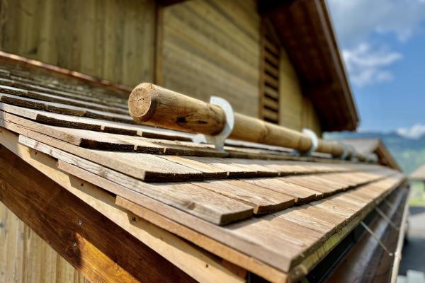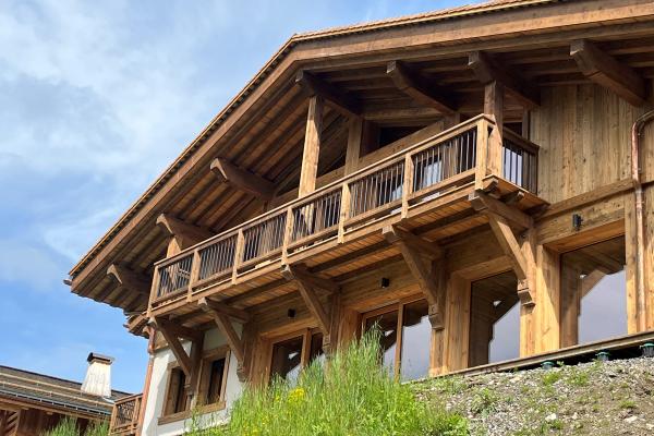 Un détachement parcellaire permet d’isoler un terrain sur lequel a été construit un premier chalet d’environ 150m2.