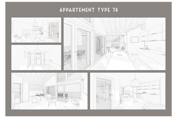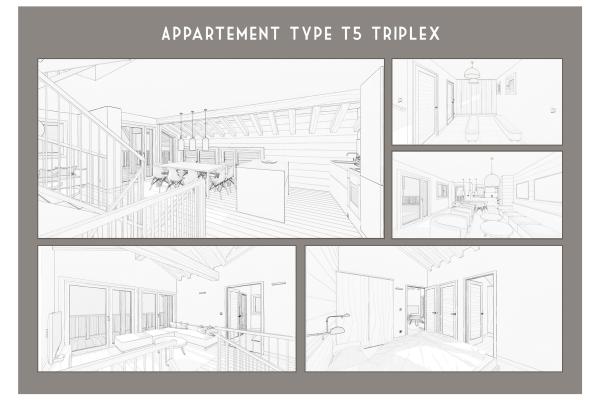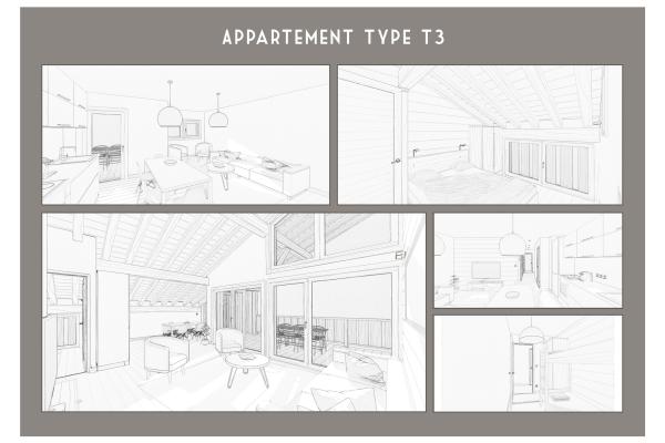 Cette copropriété de deux chalets se compose de 8 appartements du T3 au T5 Triplex, de 12 stationnements couverts et 6 stationnements extérieurs, et d'un très grand local à vélo.