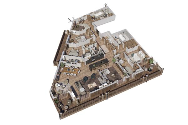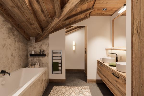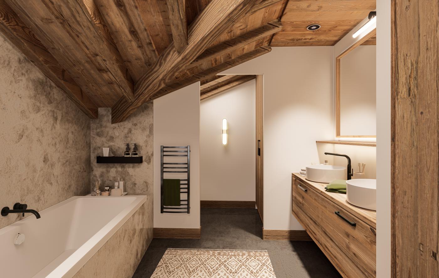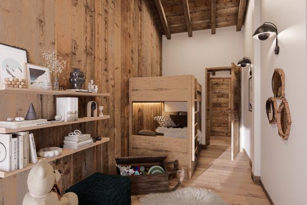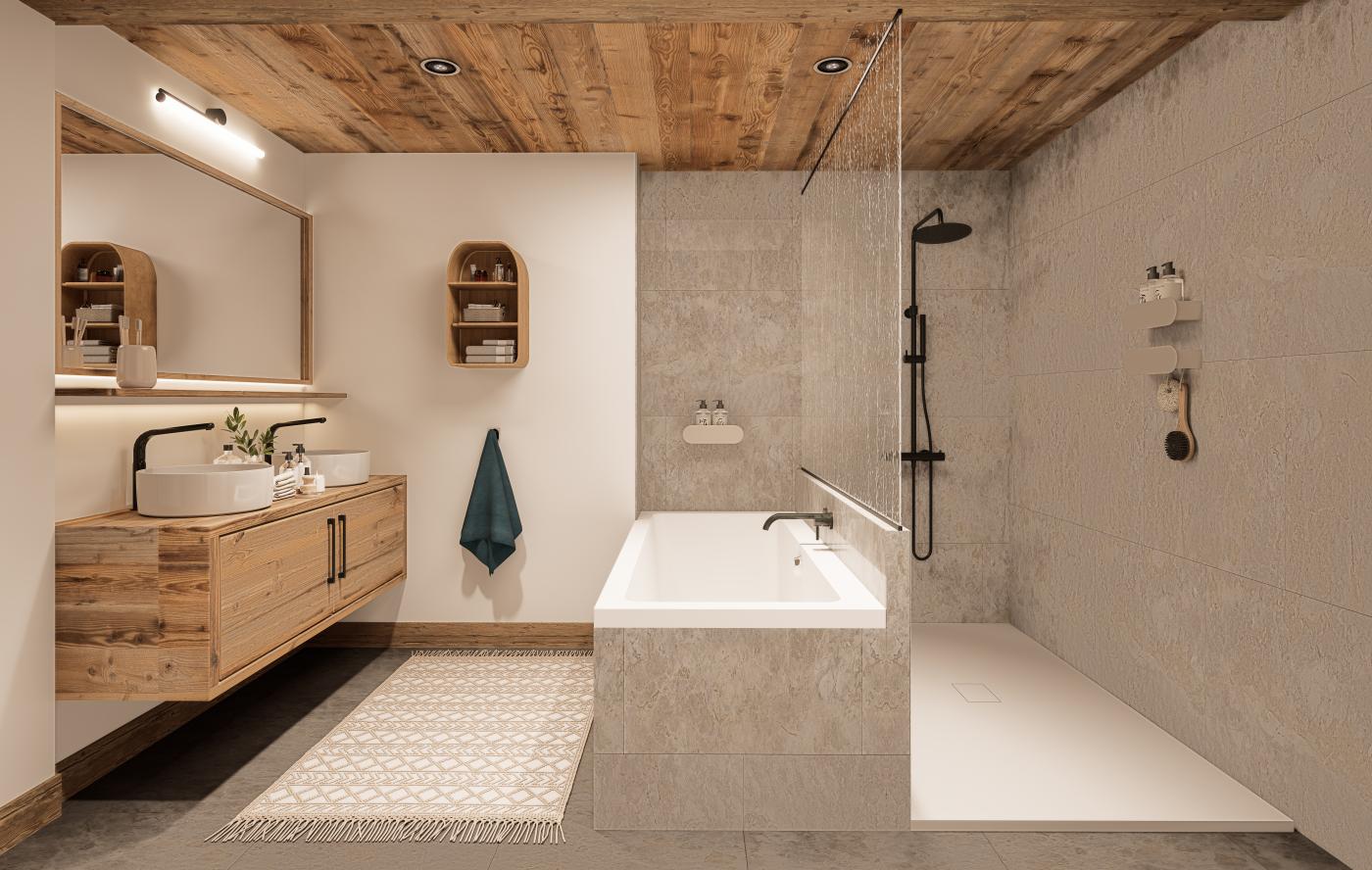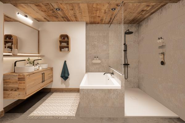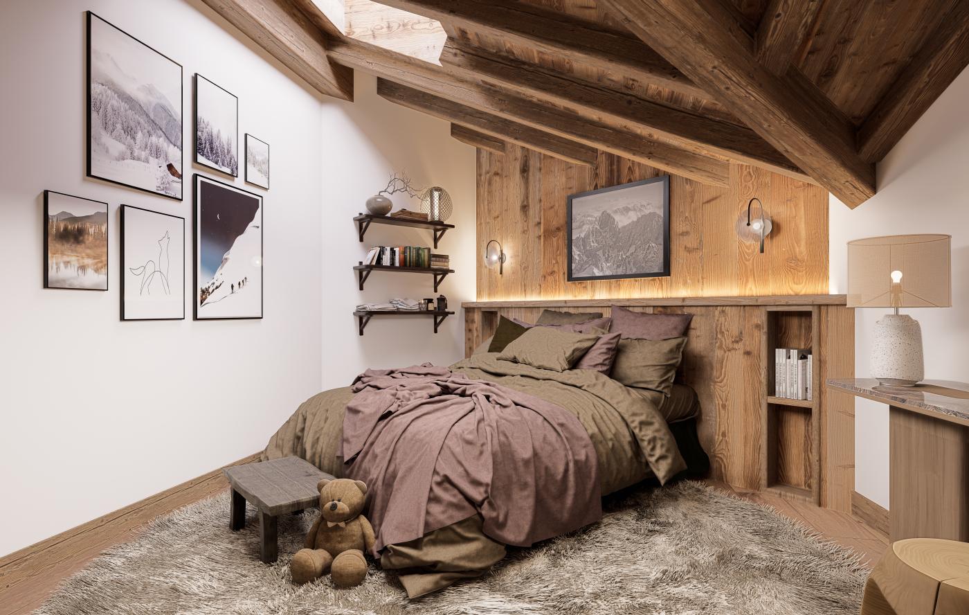 Du T3 + cabine au T5 + cabine entièrement sous les comble, les surfaces généreuses, de 82 m² à 214 m², offrent des volumes remarquables et une qualité de vie rare en station.