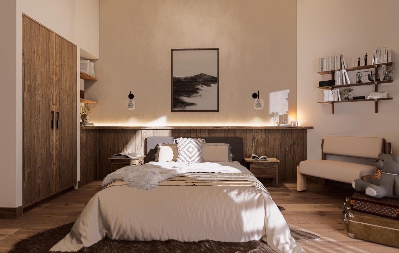 Baignés de lumière grâce à une exposition plein sud, les appartements profitent d’un ensoleillement optimal tout au long de la journée, offrant une atmosphère chaleureuse et des vues dégagées sur l’environnement alpin.